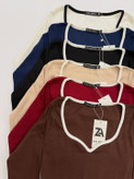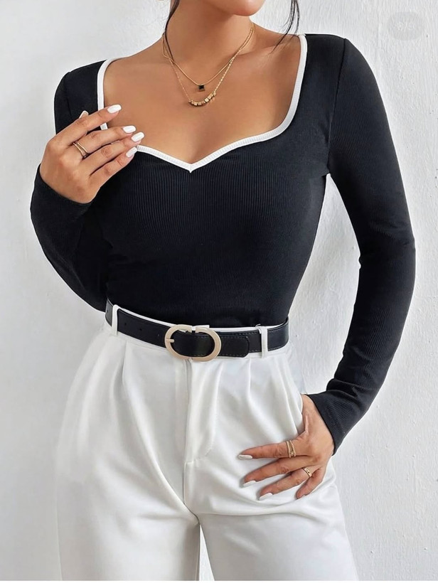 بلوز با جنس نخ پنبه ۱۰۰ درصد و ویژگیهای قد ۵۸ سانتیمتر، عرض سینه ۳۸ سانتیمتر و دور سینه ۷۸ سانتیمتر در حالت معمولی و ۱۳۰ سانتیمتر در حالت کشسانی.