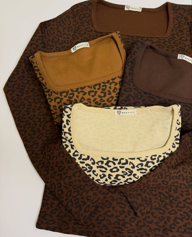 بلوز پلنگی یقه خشتی سایز فری سایز (۳۸ تا ۴۲)