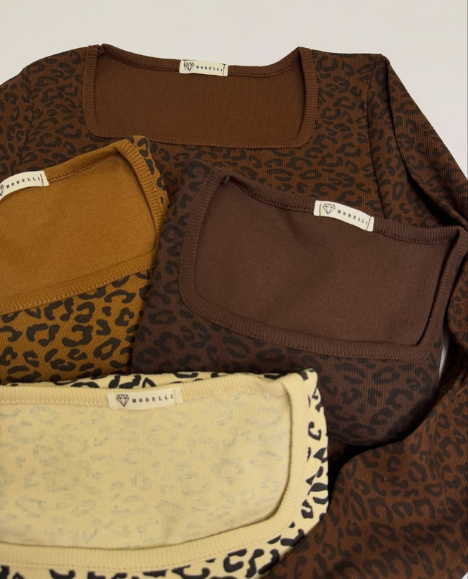 بلوز پلنگی با جنس نخ پنبه ۱۰۰ درصد و جزئیات قد ۵۸ سانتیمتر، عرض سینه ۳۵ سانتیمتر و دور سینه ۷۰ سانتیمتر در حالت معمولی و ۱۲۵ سانتیمتر در حالت کشش.