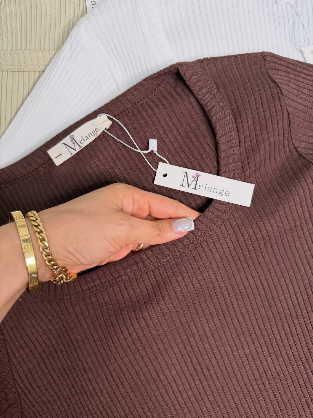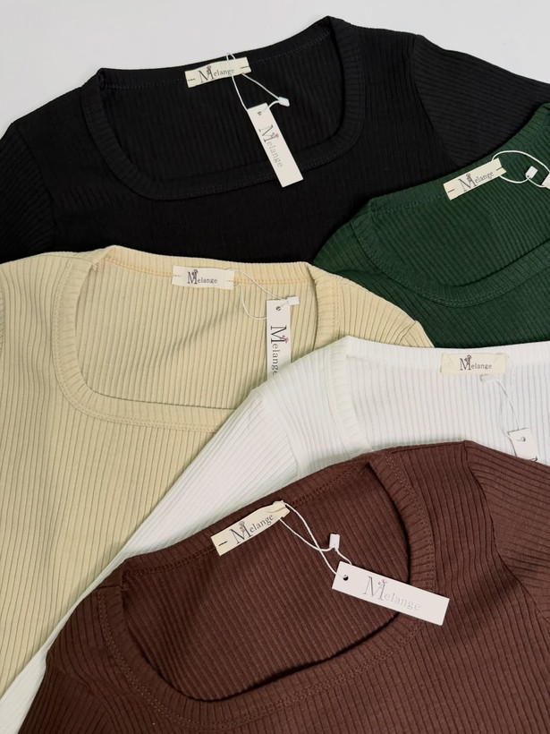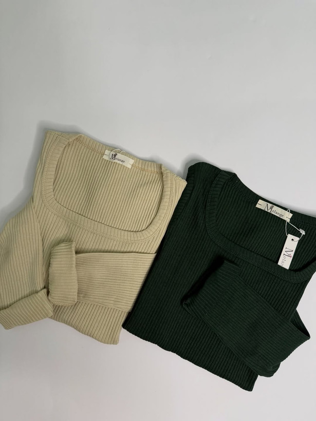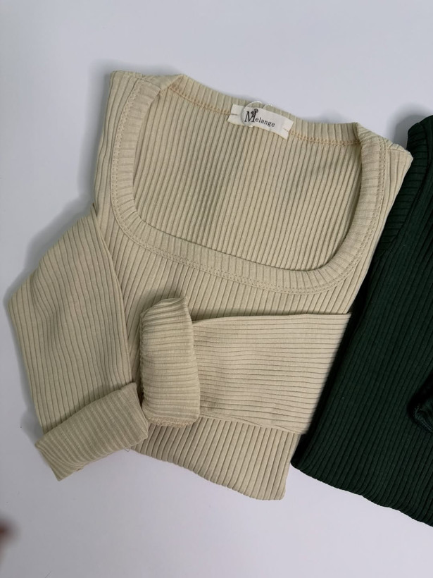 بلوز یقه خشتی آستین دار ملانژ