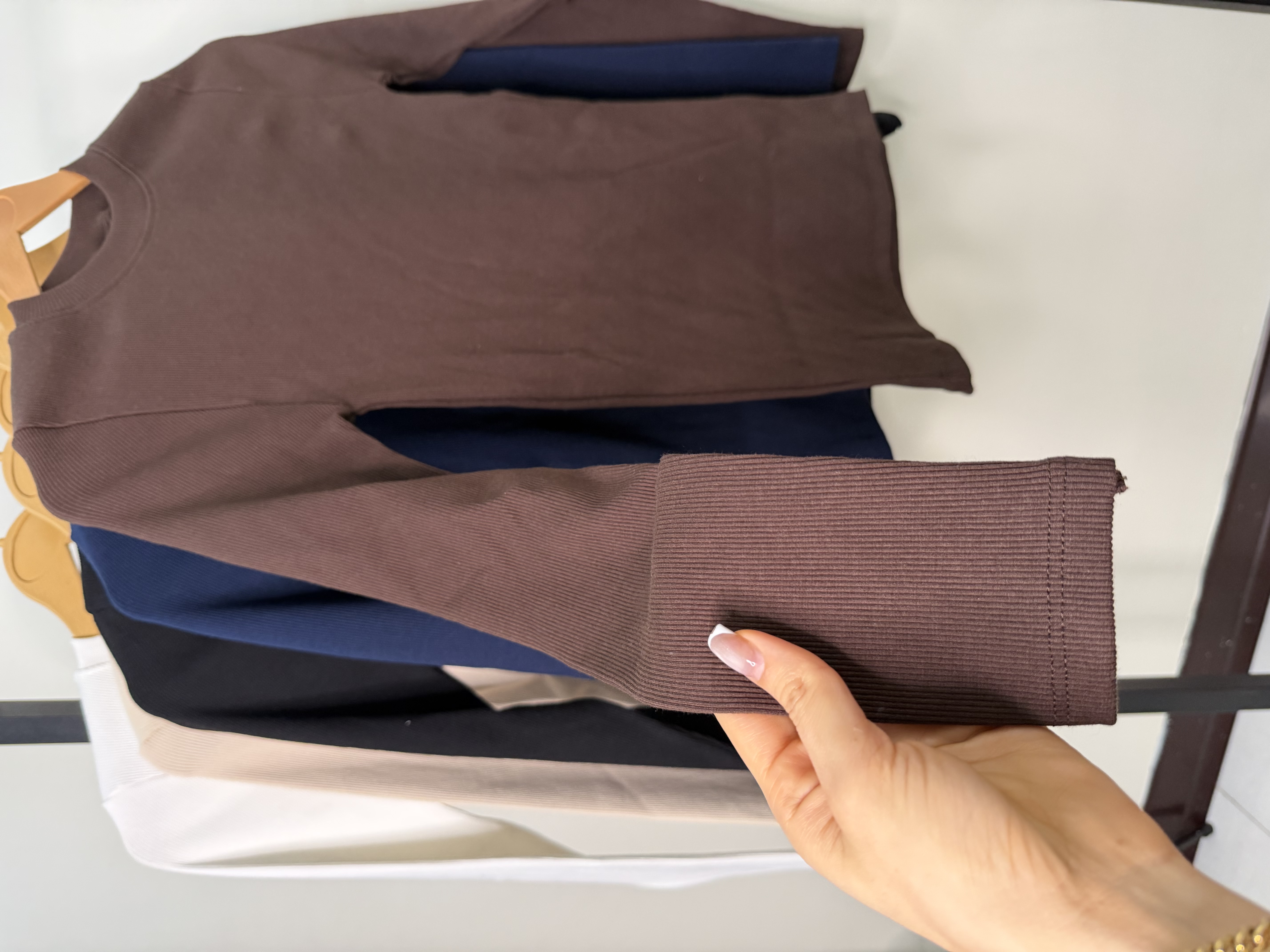 بلوز كبريتي يقه گرد