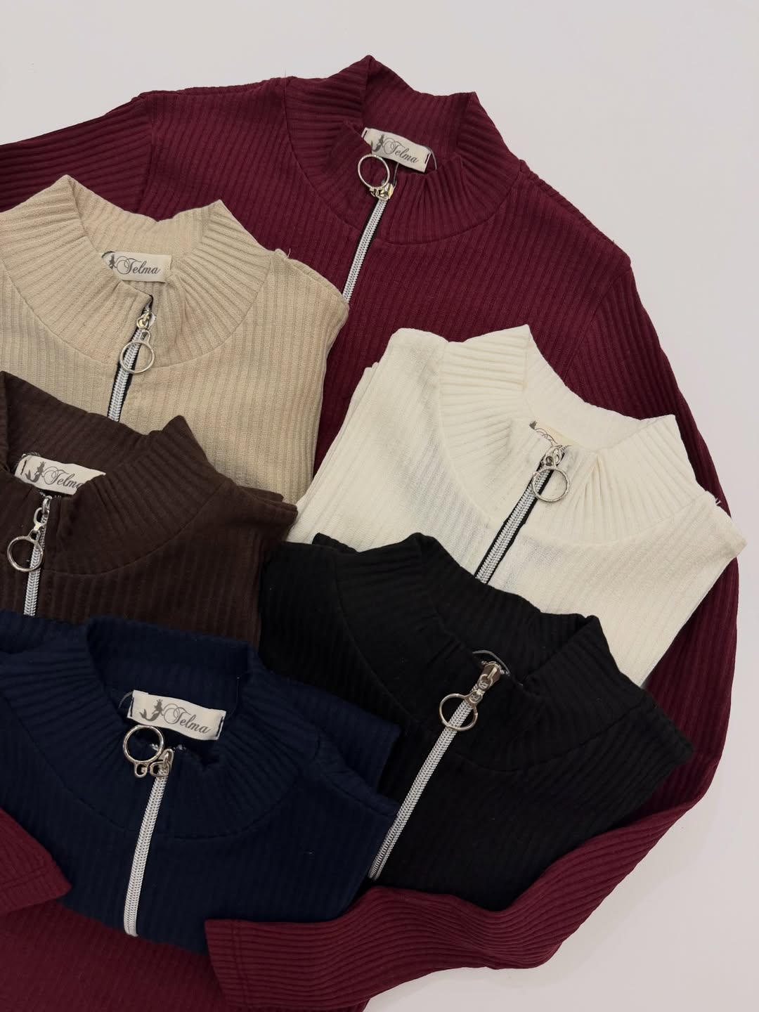 بلوز يقه ايستاده نيم زيپ با جنس نخ پنبه ١٠٠درصد، قد ٦٠ و عرض سینۀ ٣٦، دور سینۀ ٧٢ و کشسانی تا ١٣٠.