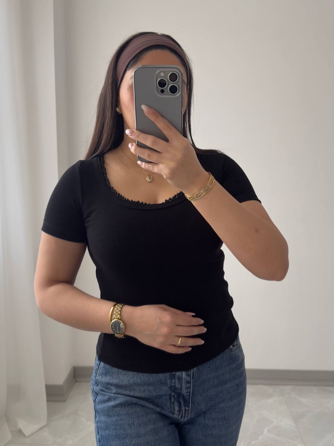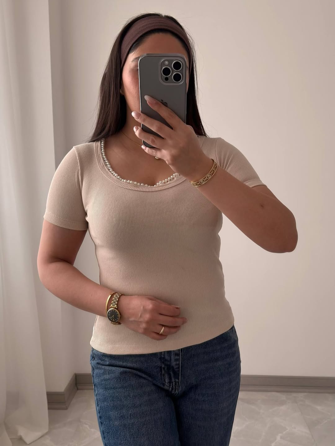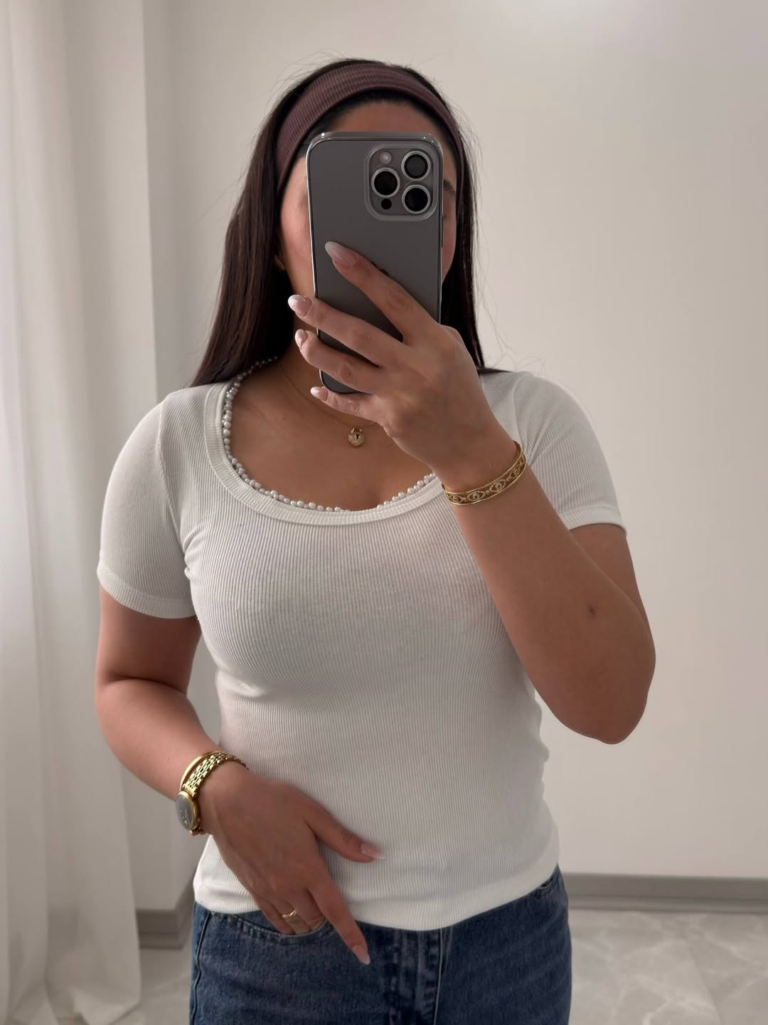 تی شرت یقه مرواریدی با جنس نخ پنبه ١٠٠درصد سوپر کشبافت. قد ٥٥ سانتیمتر و عرض سینه ٣٤ سانتیمتر. دور سینه بین ٧٨ تا ١٢٠ سانتیمتر کشسانی دارد.