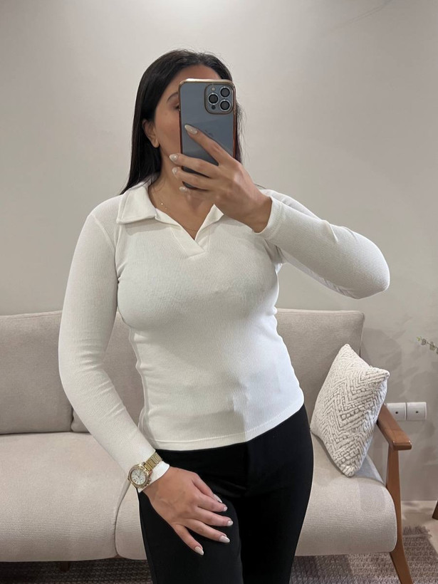 بلوز آستین بلند یقه مردانه فری سایز