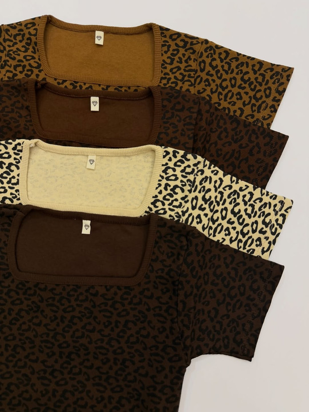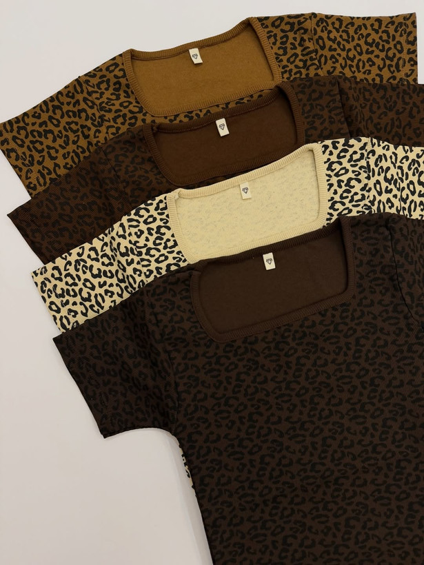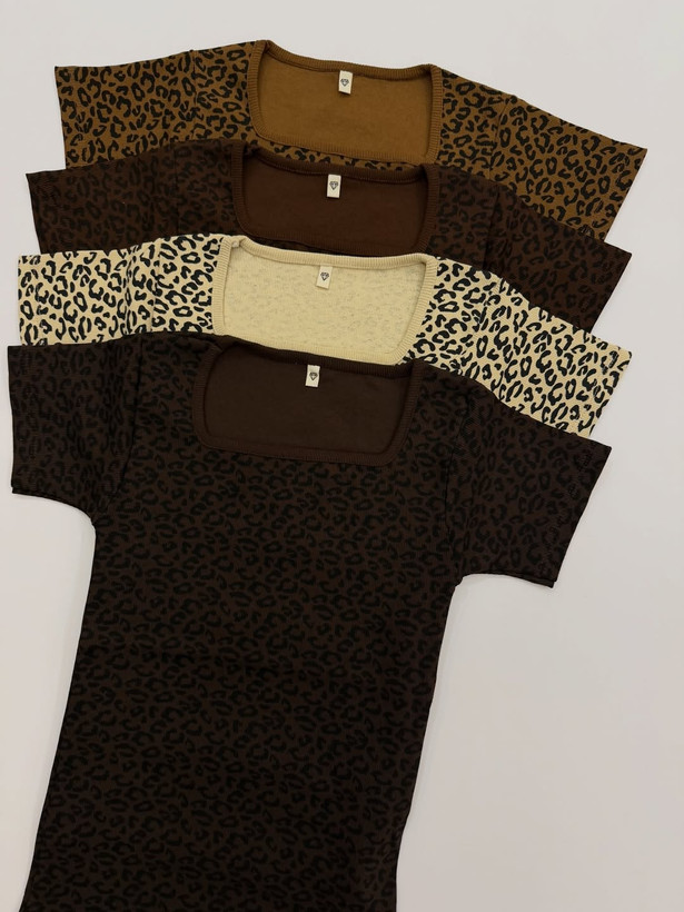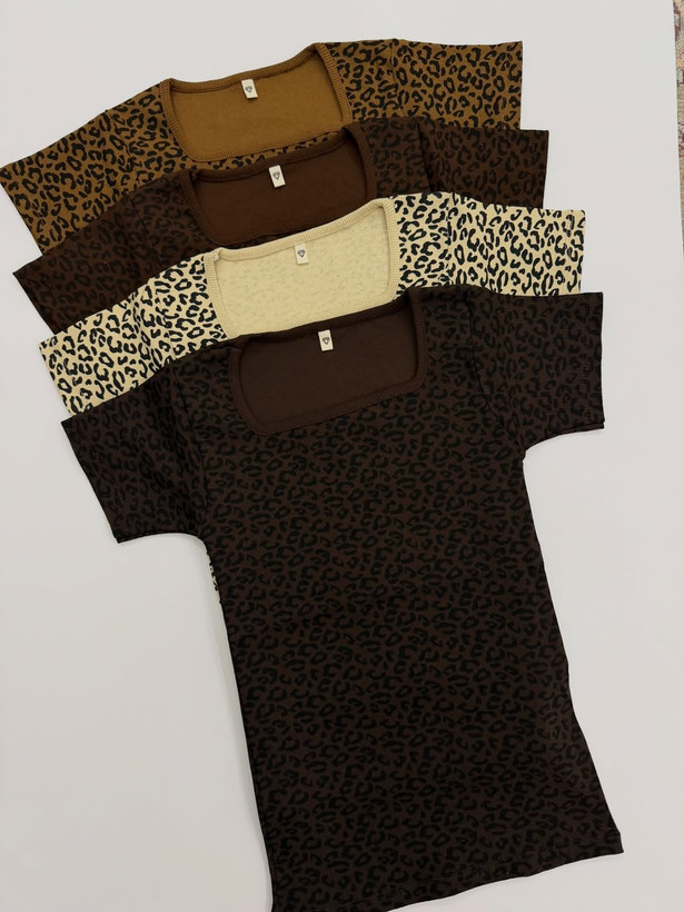 تی شرت یقه خشتی پلنگی سایز فری