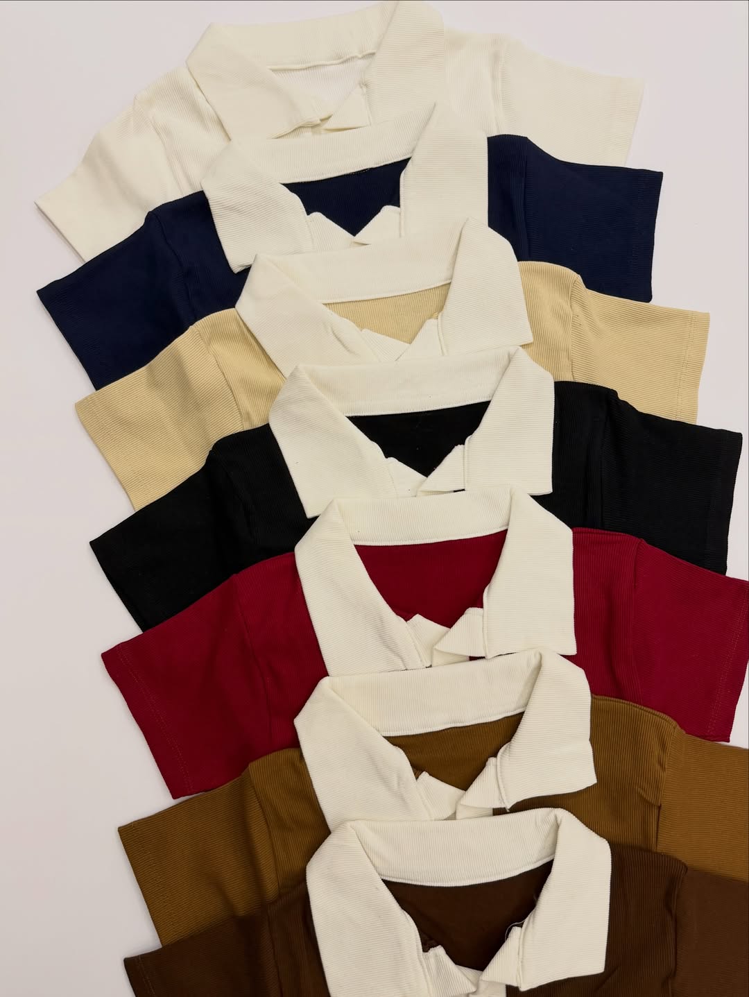 تی شرت یقه شکاری با جنس نخ پنبه ۱۰۰درصد. این تی شرت با قد ۵۵ سانت، عرض سینه ۳۶ سانت و دور سینه ۷۲ تا ۱۲۰ سانت کشسانی عرضه میشود.