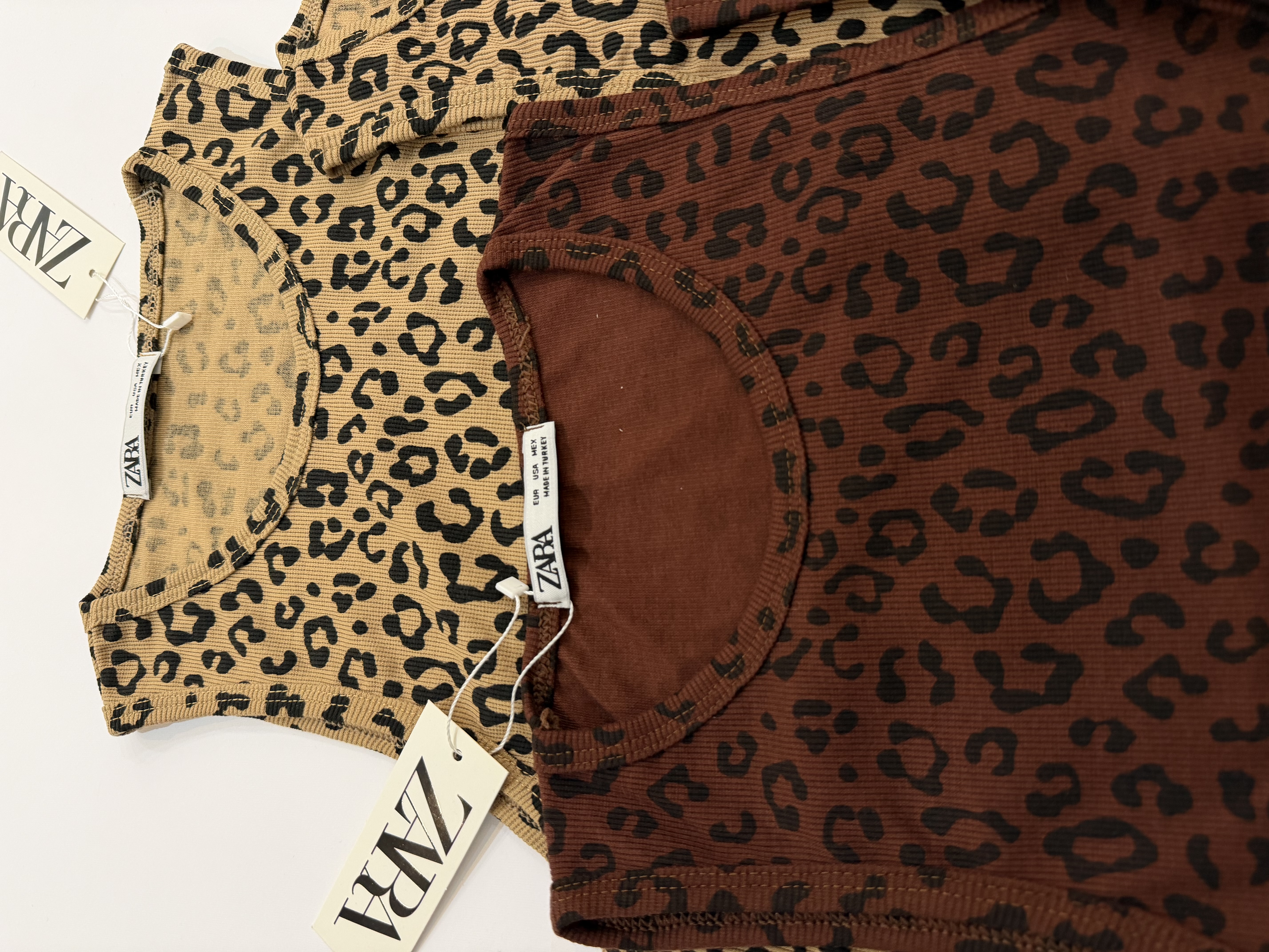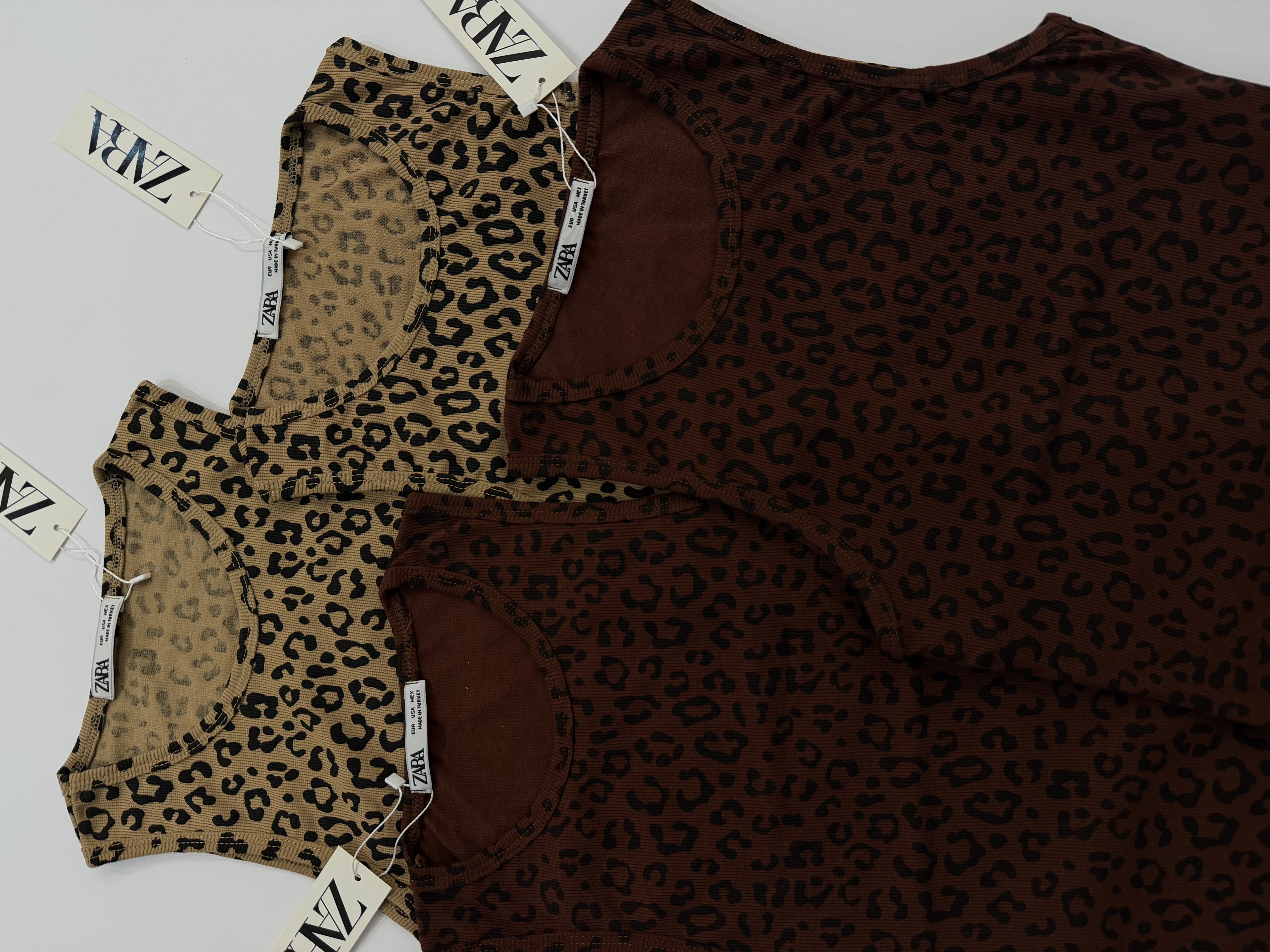 تاپ يقه گرد پلنگي پارچه وارداتي هست دوخت ولي داخل ايران انجام شده جنس و كيفيتش بينظيره تا سايز ٤٢ كامل اندازه ميشه قد ٦٠