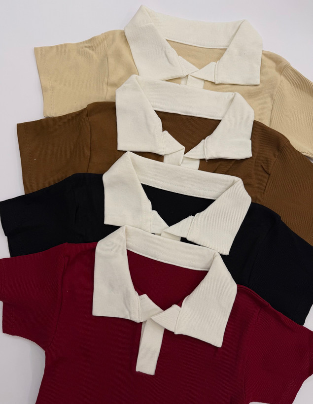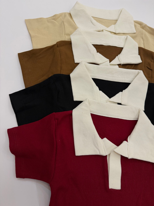 تیشرت یقه شکاری دو رنگ